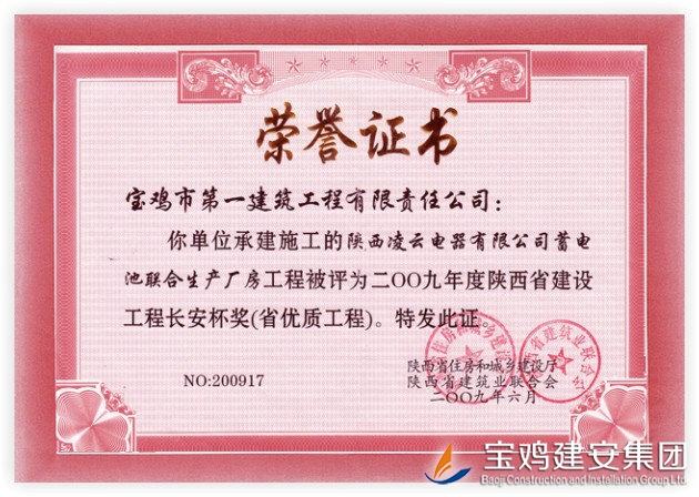 Chang’an Cup Award of Lingyun Electric Plant Project