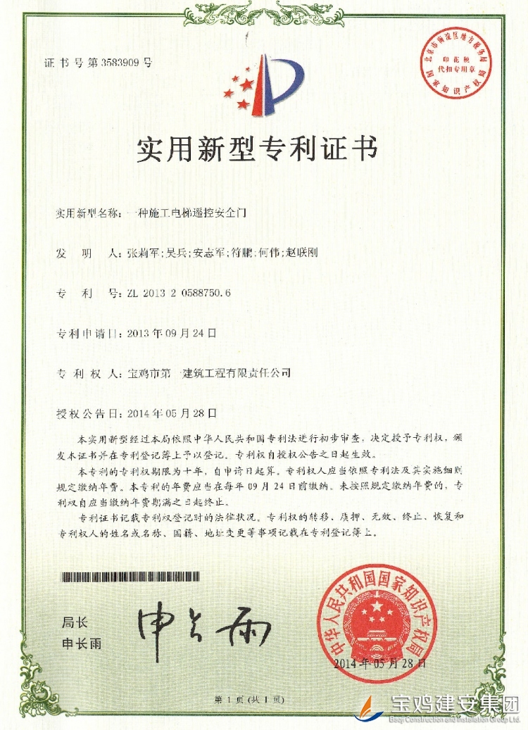 A kind of remote control safety door of construction elevator