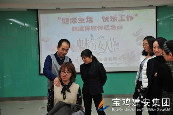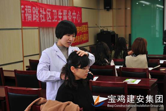 3月8日下午,在我司22樓第三會(huì)議室工會(huì)組織舉辦了一場(chǎng)“健康生活,快樂工作”健康保健體驗(yàn)活動(dòng),邀請(qǐng)寶雞市中醫(yī)醫(yī)院推拿科鄧寶鋒副主任醫(yī)師為公司員工講授了一堂常見職業(yè)?。i椎、腰椎)等健康保健知識(shí)。公司工會(huì)楊主席、新福路社區(qū)衛(wèi)生服務(wù)中心醫(yī)護(hù)人員、公司員工五十多人參加了本次活動(dòng)。