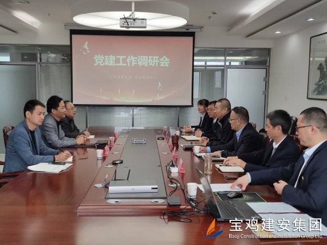 10月19日上午,市住建局黨組專職副書記馬平科,人教科科長李泉、副科長陳發(fā)平一行前往寶雞建安集團公司調研指導主題教育開展及“四強”非公企業(yè)黨組織建設等情況。集團公司黨委書記、董事長、總經(jīng)理景常榮,黨委副書記胥永寧,黨委副書記、紀委書記侯少偉和部分黨委委員及基層黨支部書記參加了調研活動。
