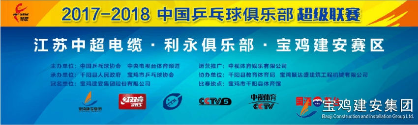 2017-2018中國(guó)乒乓球俱樂(lè)部超級(jí)聯(lián)賽--江蘇中超電纜·利永俱樂(lè)部·寶雞建安賽區(qū)