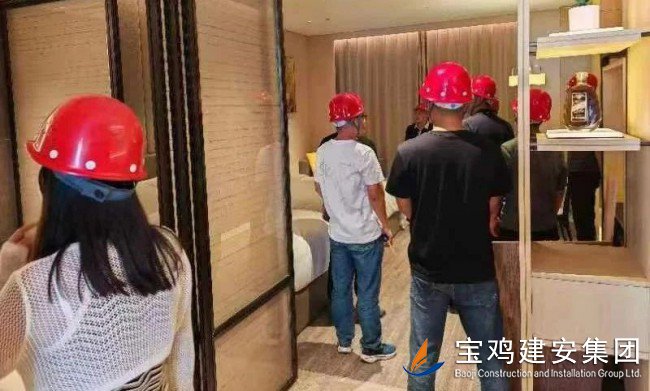 來訪人員首先闡明了此行的目的和意義,我單位相關管理人員針對隴縣海棠酒店項目特征、在建情況、建成后主要建筑功能,向各位嘉賓進行了詳細介紹。隨后在安裝一公司現(xiàn)場管理人員陪同下,對隴縣海棠酒店已成型樣板間,廚房、大堂及地下車庫等工程重點建設部位進行實地參觀考察。我公司管理人員對西建集團、陜西省建筑設計院同仁提出的專業(yè)問題給予了耐心解答,在輕松友好的氣氛中,嘉賓對我公司施工項目質量及企業(yè)綜合實力表達了高度認可與肯定。