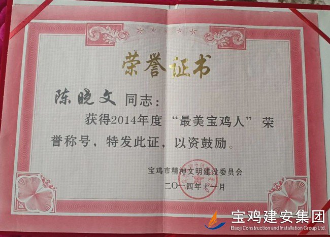 一年一度的“五一”國際勞動節(jié)到來之際,從寶雞市總工會傳來喜訊, “2024年度寶雞市五一勞動獎章”先進名單正式確定,我司安裝分公司先后擔任平?jīng)龈淮簣@及西寧長島(宗地三十六)項目一期一標段安裝電氣施工員的陳曉文同志榜上有名,受到通報嘉獎! 陳曉文同志,1998年畢業(yè)于寶雞技師學院土建專業(yè),作為一名一線員工,多年以來,他深知理論知識的重要性,利用業(yè)余閑暇時間,不斷學習土建安裝電氣專業(yè)課程。憑借著不懈的努力和刻苦鉆研,他于2015年通過了二級建造師考試,繼而于2020年通過了一級建造師考試,連續(xù)取得了機電、市政、公路證書。 陳曉文同志長期工作在施工一線,勤勤懇懇、兢兢業(yè)業(yè),以勤奮努力的工作熱忱和扎實細致的工作作風,贏得了公司上下的一致好評,他所帶領的班組2014、2015、2016年連續(xù)被評為優(yōu)秀班組。其本人也曾于2014年被寶雞市文明委授予“最美寶雞人”榮譽稱號。 |